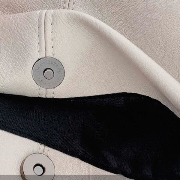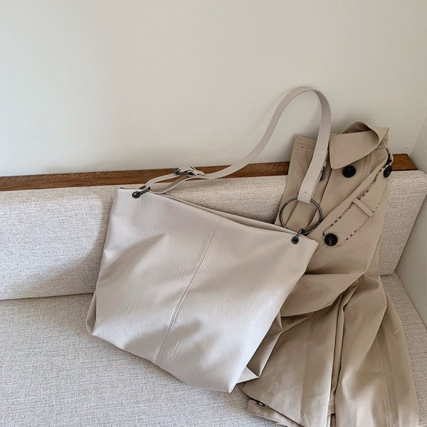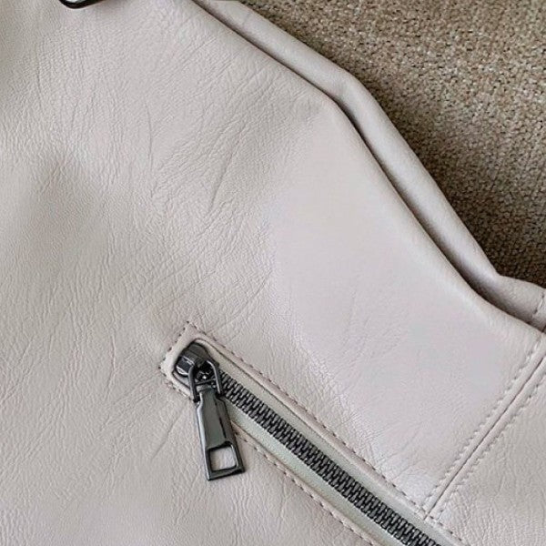 Soft vegan leather and roomy for every day use. Matching vegan leather cross body strap.