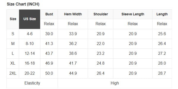 See size chart for approximate measurements.