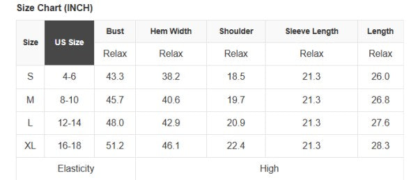 See size chart for approximate measurements.