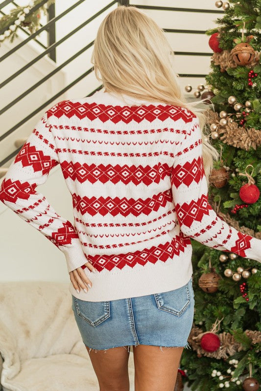 Christmas Western Geometric Crew Neck Sweater