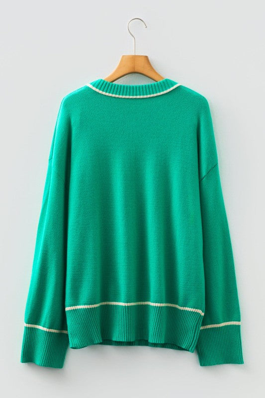 This sweater combines contemporary design with versatile styling. Contrast trim detailing adds visual interest while maintaining a polished aesthetic, while the shoulder construction delivers an effortlessly relaxed silhouette. The generous baggy fit accommodates various body types without compromising structure or sophistication. Crafted from quality knit fabric, this piece transitions seamlessly from casual to elevated looks, making it an essential layering staple for any wardrobe. Viscose/Polyester/Poly