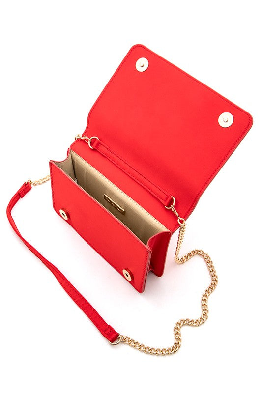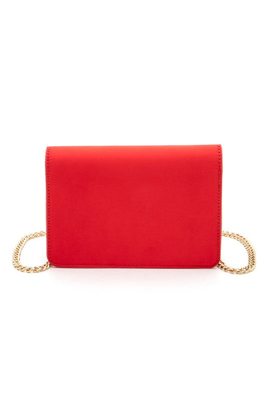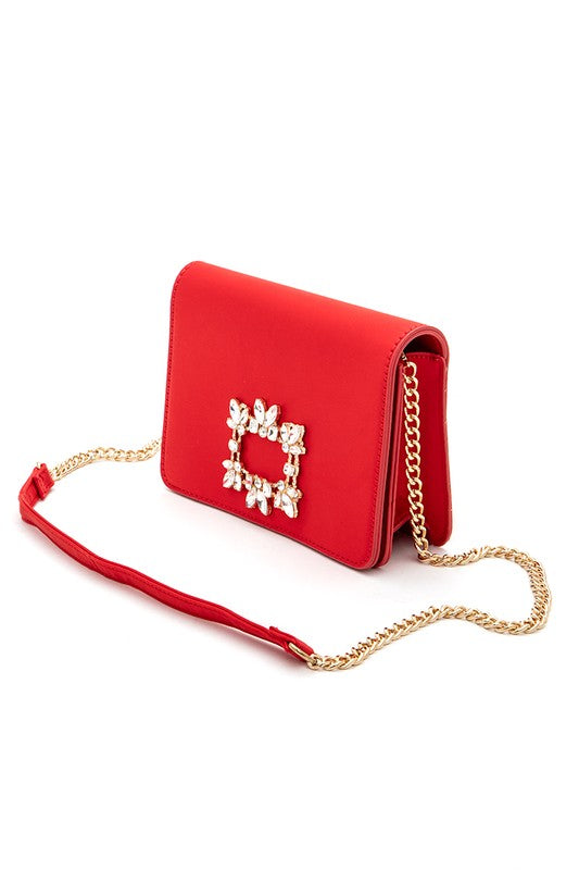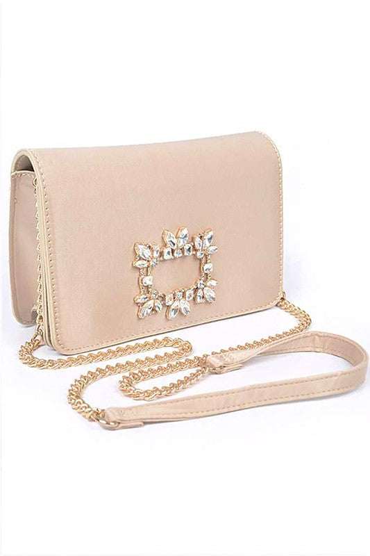 Crystal Buckle Designed Satin Crossbody Bag