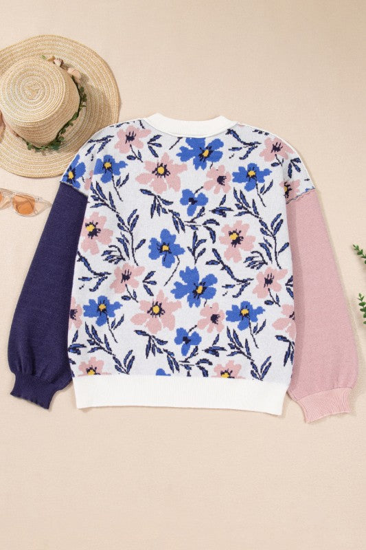Turn heads this season in our sweater—where feminine florals meet bold color blocking for maximum style impact. The neckline design keeps things classically chic, while the textured knit delivers cozy warmth perfect for layering through cold season. Soft and comfortable enough for all-day wear, this sweater effortlessly blends eye-catching design with everyday wearability. Your new go-to piece for looking put-together without trying too hard.