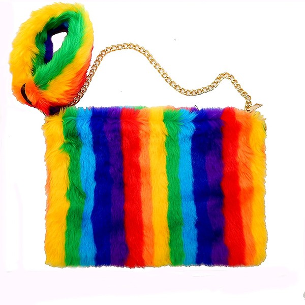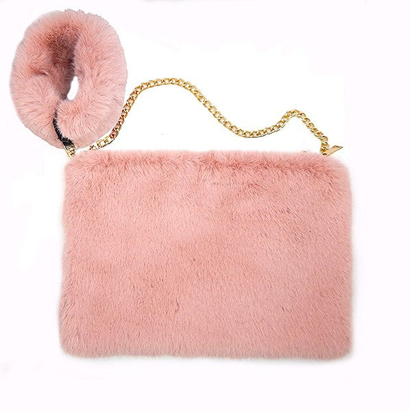 - This stylish faux fur clutch bag features a luxurious fur wristlet, making it a chic accessory for any wardrobe.