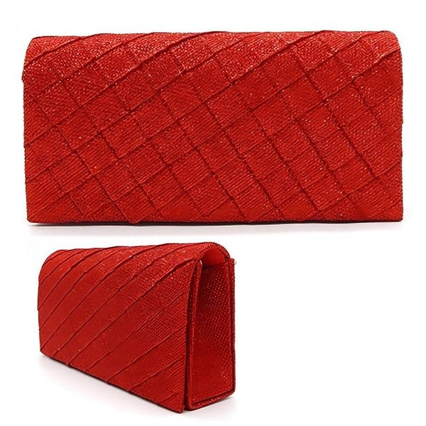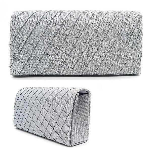 - This elegant evening clutch bag features a glitter quilted pattern for a touch of glamour.