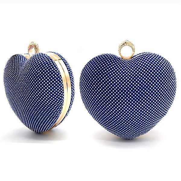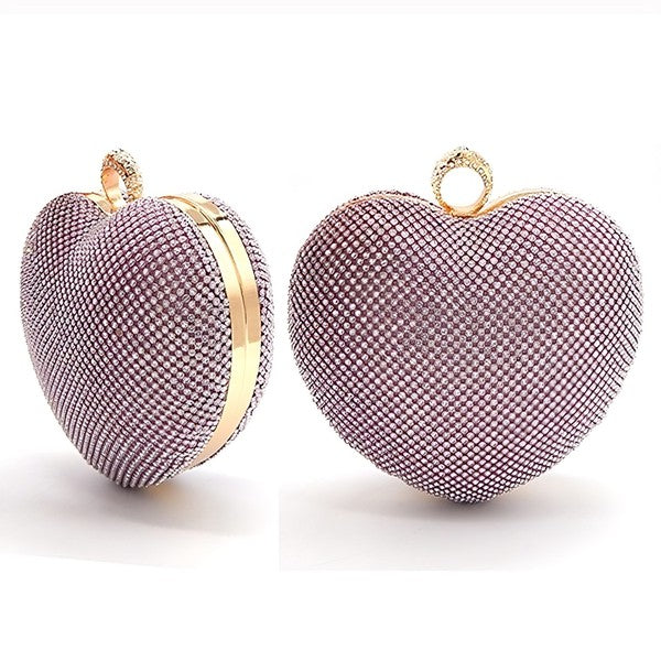 - This bag clutch features a beautiful heart-shaped rhinestone ring detail that adds a touch of sophistication to your ensemble.
