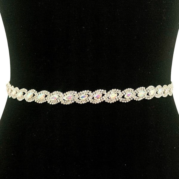 - Elegant Marquise oval cut crystal bridal sash belt adds a touch of sophistication to any wedding gown.
