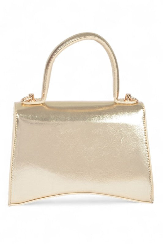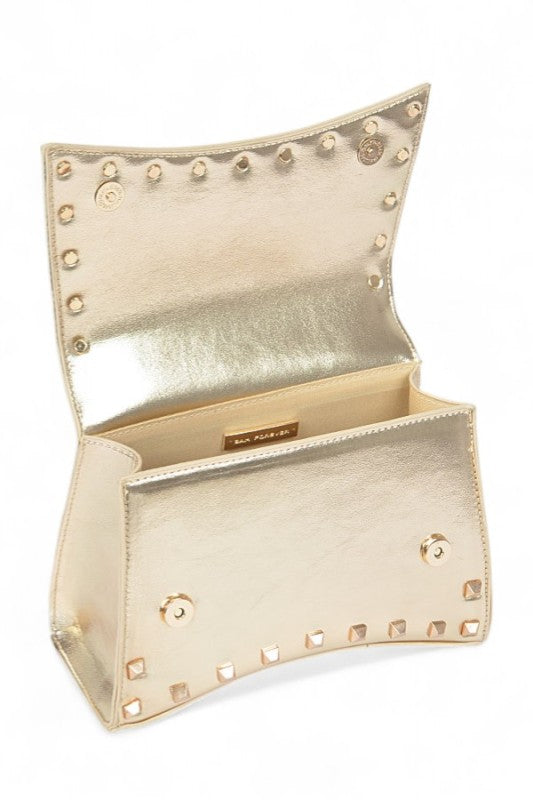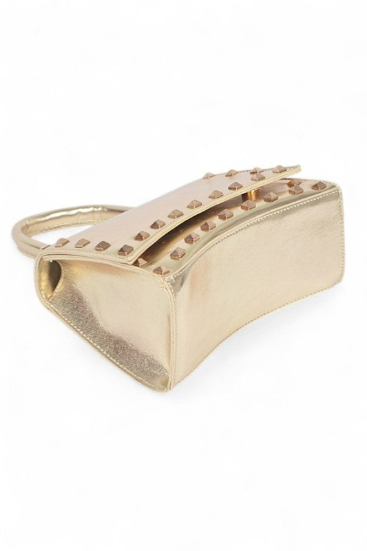 Metallic Faux Leather Studded Top Handle Swing Bag