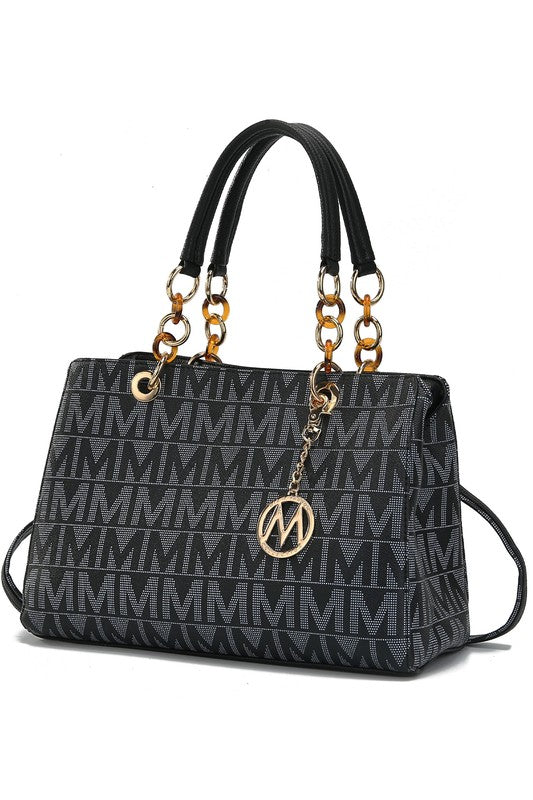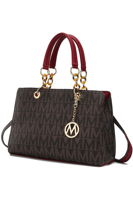 Interior features triple spacious compartments with mid zipped compartment, two slip pockets, and a back-zipper pocket.