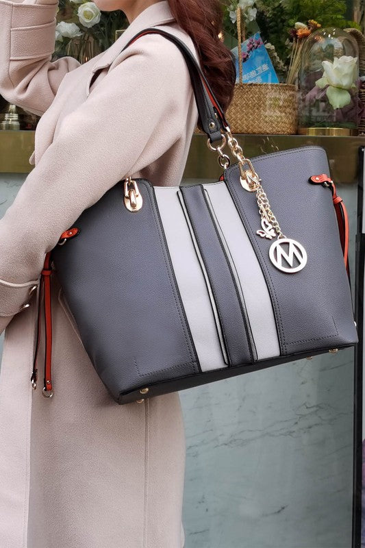1 exterior zipper pocket, 2 interior pockets, 1 interior zipper pocket with our signature Mia K. Collection Plate.