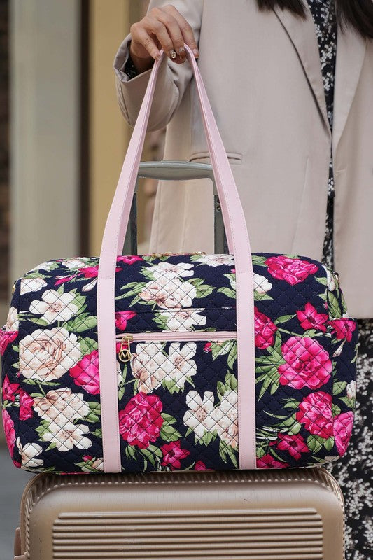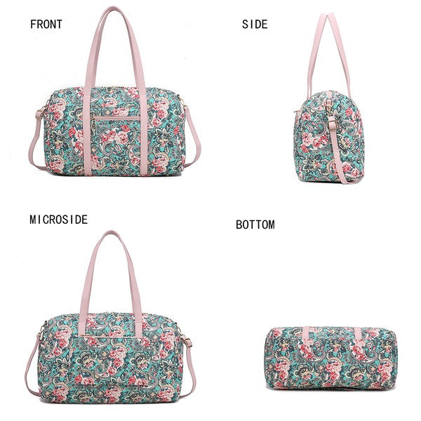 MKF Collection Khelani Quilted Cotton Botanical Pattern Women's Duffle Bag by Mia K