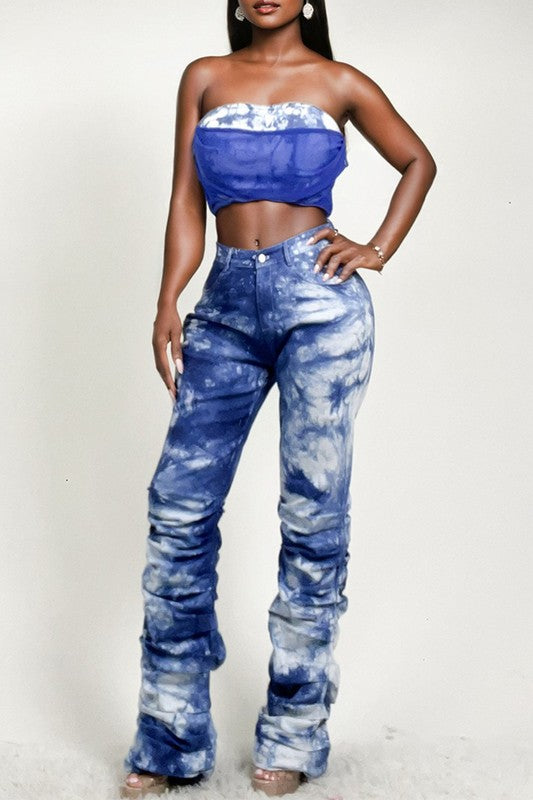 Elevate your style with the Ocean Breeze Co-Ord Set, a perfect blend of modern chic and effortless comfort. This eye-catching ensemble features a vibrant blue tube top, beautifully contrasted with a subtle white pattern that mimics the serene waves of the ocean. The matching high-waisted pants boast a trendy tie-dye design, ensuring you stand out with every step. Crafted from premium materials, this set offers a flattering fit and unmatched comfort, making it an ideal choice for both casual outings and more sophisticated events. Embrace the spirit of summer and make a bold fashion statement with the Ocean Breeze Co-Ord Set.