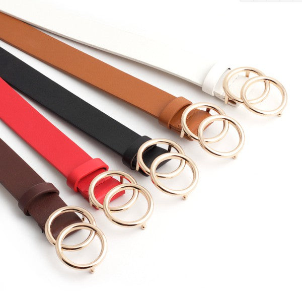 Faux vegan leatherAdjustable beltGold hardwareMultiple holes42\" in 1.06\" width Double Buckle O