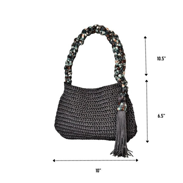 The body is tightly crocheted with strength and structure in mind, but the true statement lies in the handle: crafted from authentic Marrakesh cord, it brings a touch of global elegance and craftsmanship rooted in Moroccan tradition. Thick, braided, and crowned with a flowing tassel, it feels like a bridge between heritage and modern grace.