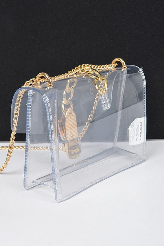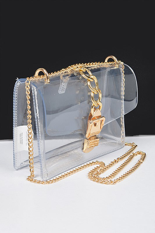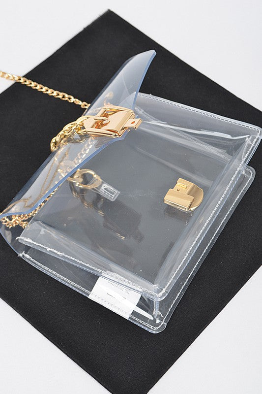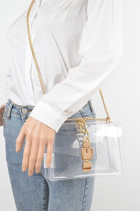 Width - 8\" Depth - 2.5\" Height - 5.5\"PVC, Mix MetalIncludes Chain StrapSnap On Closure Lead & Nickel Compliant