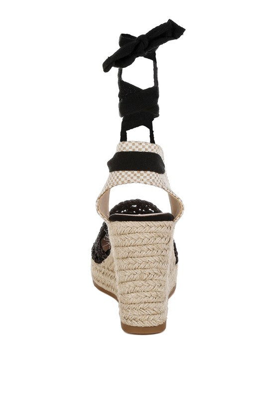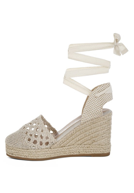The wedges exude elegance with its woven fabric and classic espadrille design that flatters and elongates your silhouette. Featuring a comfortable 4-inch heel for added height, it's both chic and easy to wear. The detachable lace-up detail brings a unique twist to this timeless wardrobe essential, making it perfect for any event.