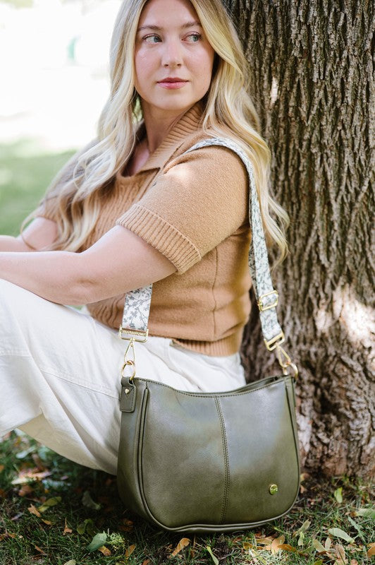 You've been looking for a stunning purse, and you have found it! Made from buttery-soft vegan leather and glossy gold hardware, the Marissa Crossbody is perfect. This stunning saddle bag transforms seamlessly from a handbag to a crossbody thanks to two interchangeable straps.