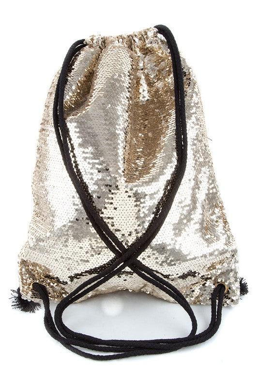 BAGSHOULDER BAGSEQUINSROPE SHOULDER STRAPSTOP TIE CLOSUREH 15 INCH X W 13 INCH X D 2 INCH