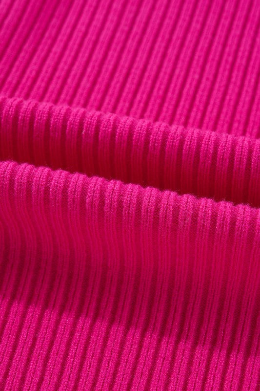 Solid Ribbed Knit Patch Pocket Short Sleeve Sweate