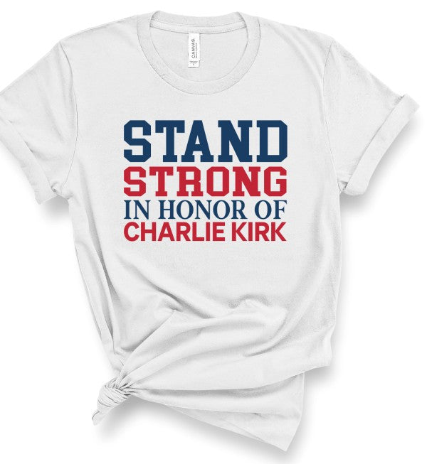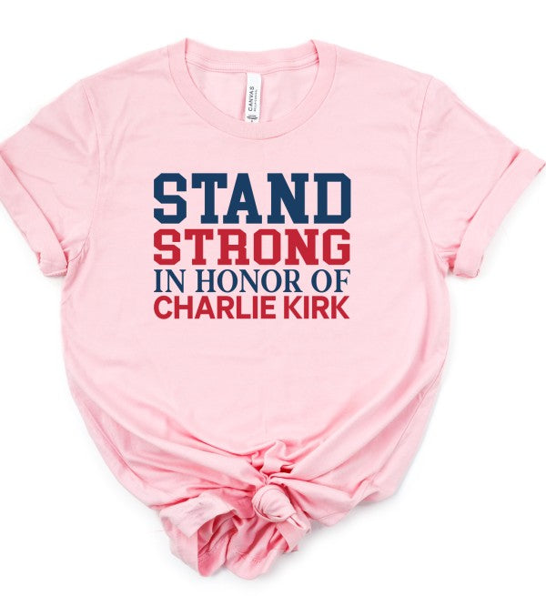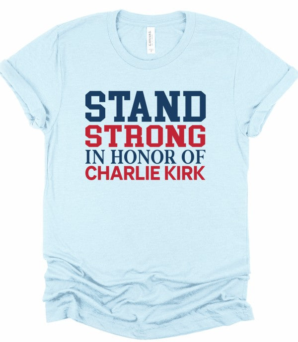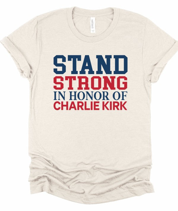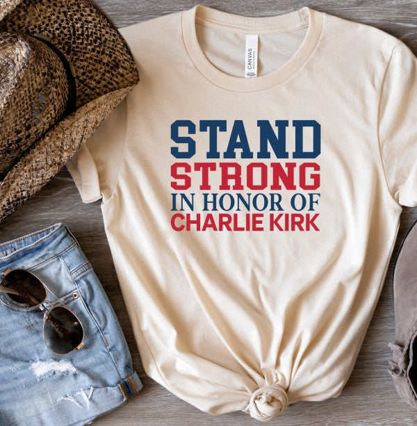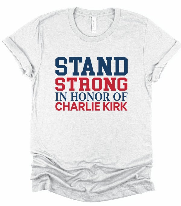 Stand Strong in honor of Charlie Kirk Boutique Graphic Top Tee100% combed and ring spun cotton Unisex sizing