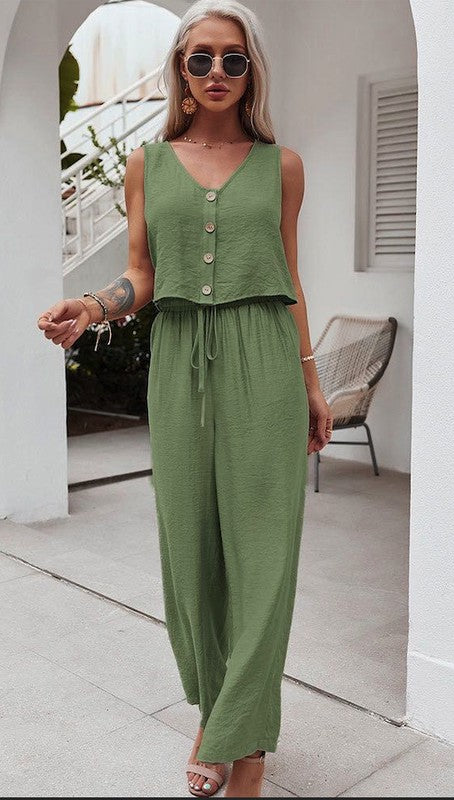 Buttoned Crop Top and Pants
