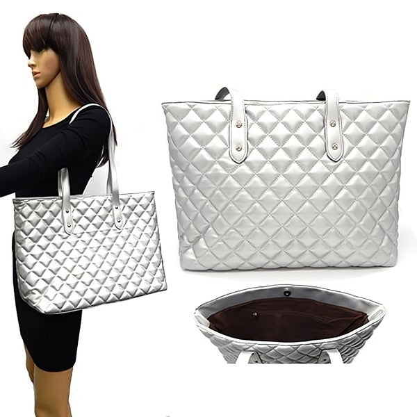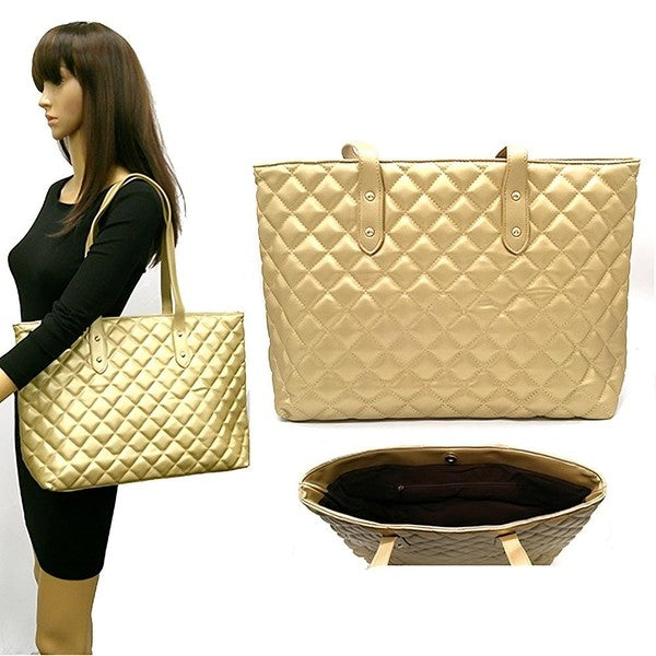 - Made with a quilted pattern and featuring a soft construction, this tote bag is both trendy and functional.
