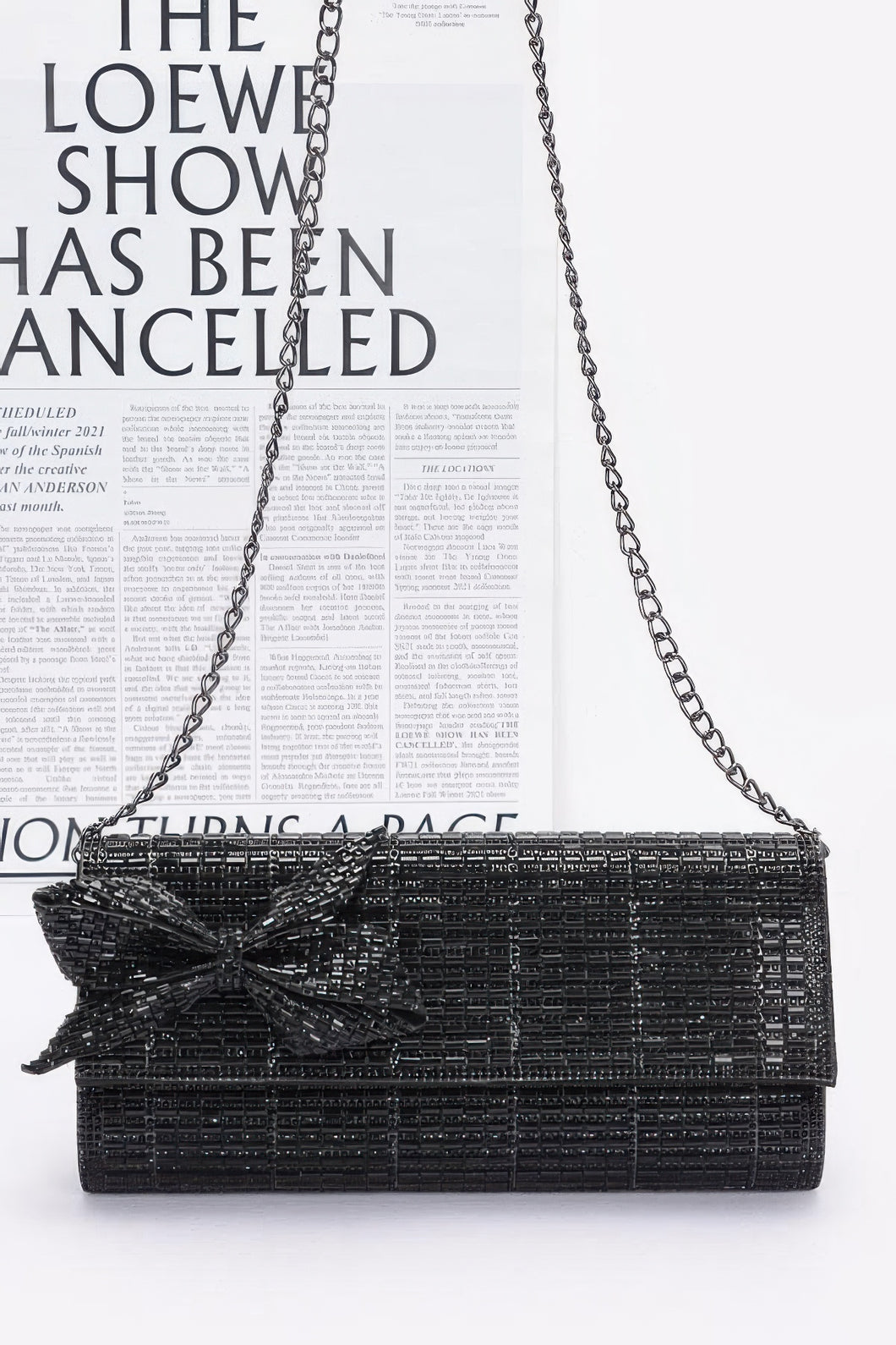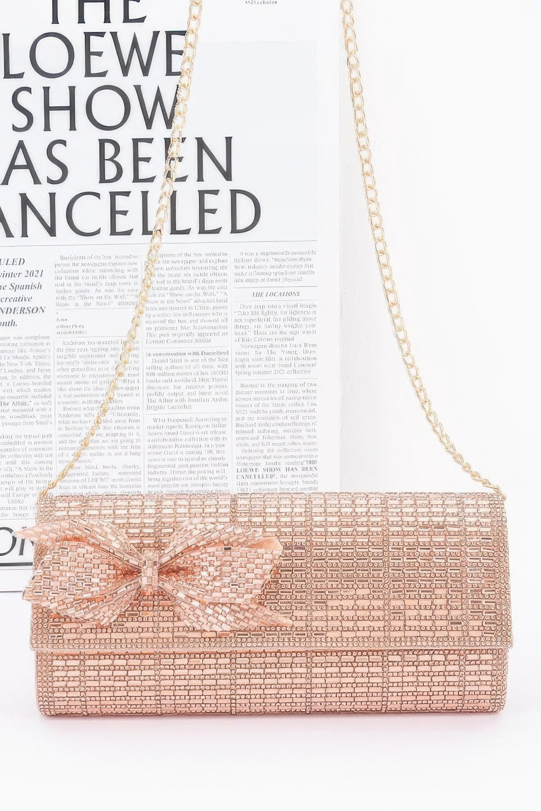 Allover rhinestone exterior with rhinestone bow accent