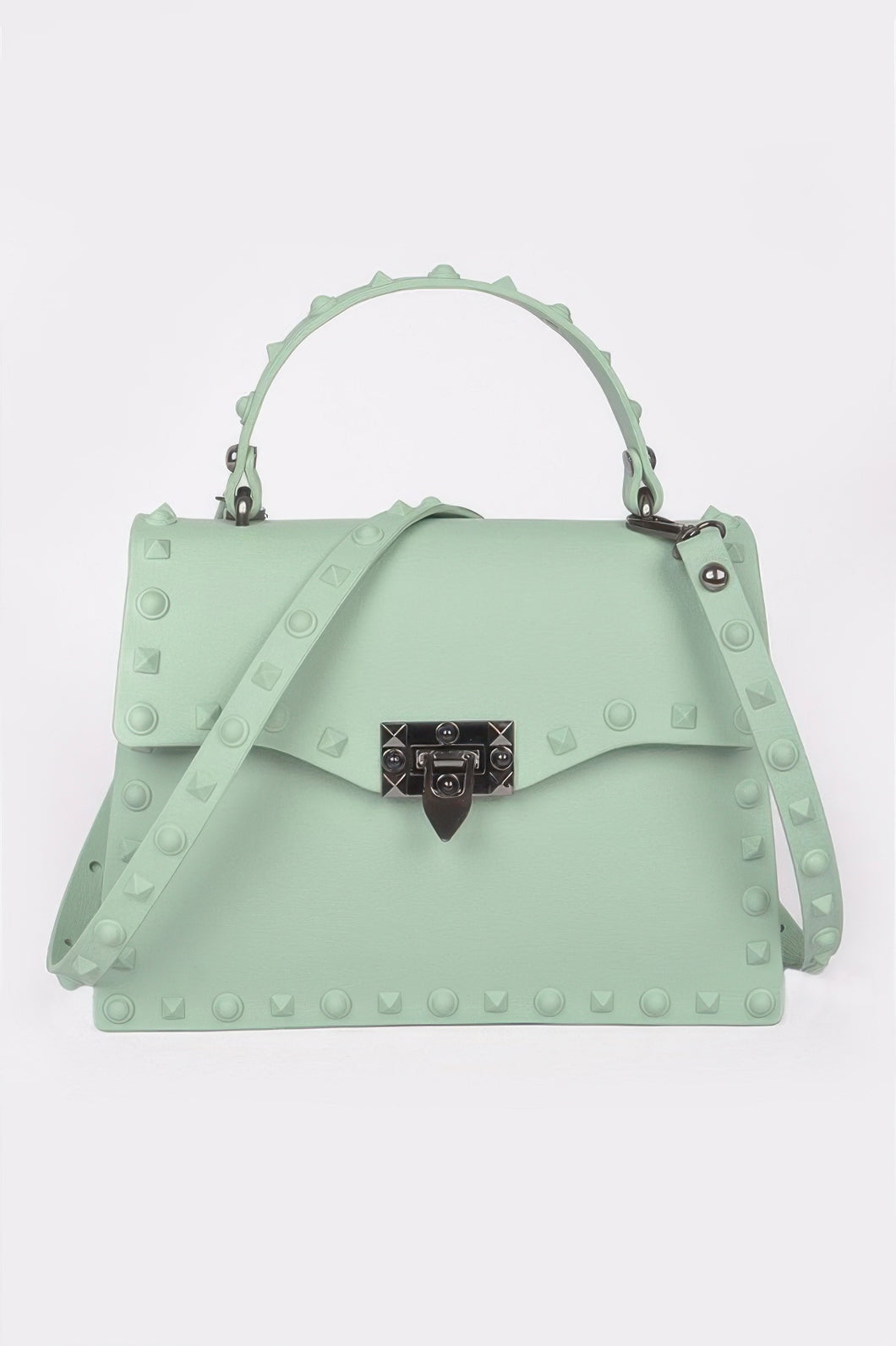 Make a bold entrance with the Monotone Studded Clutch. Crafted from durable polyurethane and detailed with mixed metal studs, this structured clutch brings edge and elegance together. Its minimalist silhouette is elevated with rivet detailing for a fashion-forward look. Ideal for nights out or edgy daytime wear, this clutch adds confident flair to any outfit. Carry it by hand or tuck it under your arm for easy style.