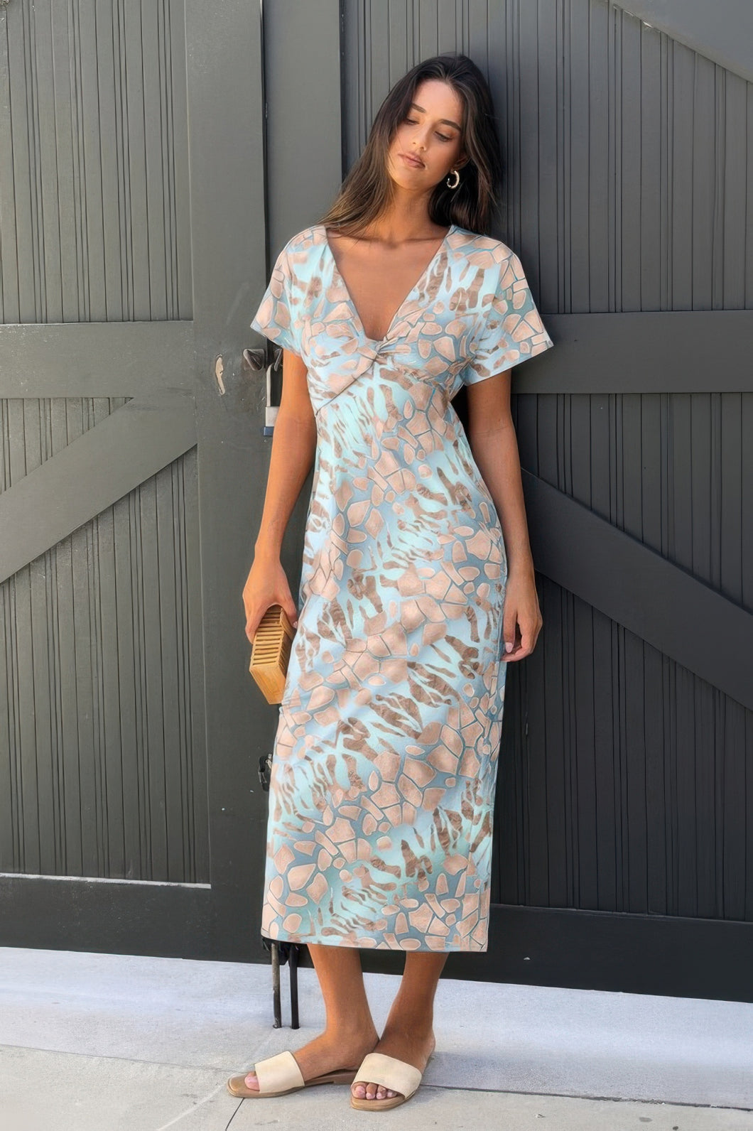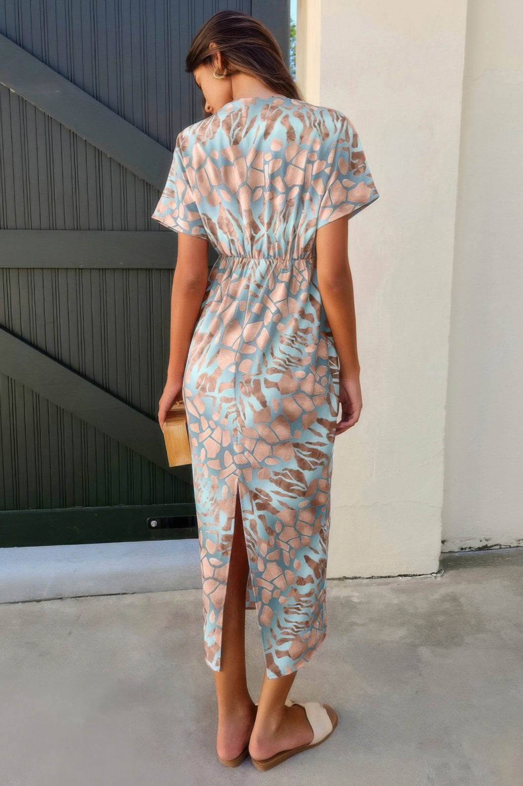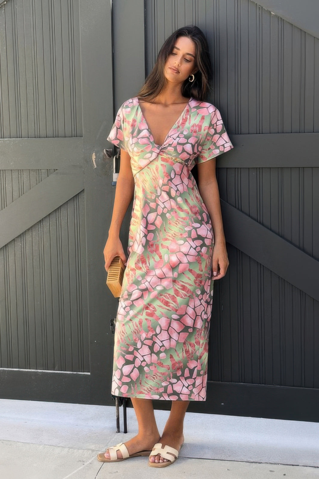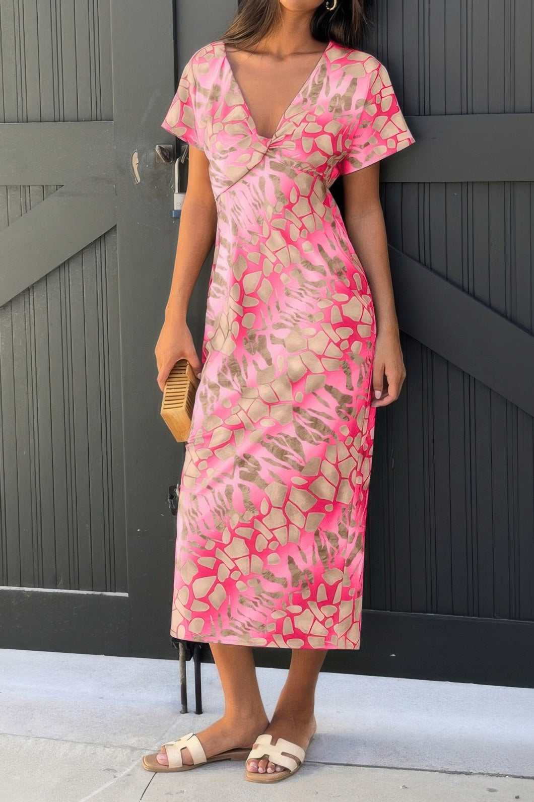 Bring a modern edge to your wardrobe with this geometric print dress, designed with a unique twist-front detail and flattering fit. The short sleeves and fitted silhouette create a sleek, streamlined shape, while the eye-catching pattern adds bold personality. Crafted from a soft blend of polyester and elastane, it offers stretch and comfort for all-day wear. Perfect for dressing up or down, this dress transitions effortlessly from daytime plans to evening outings. It’s a standout piece that’s both stylish and easy to wear.