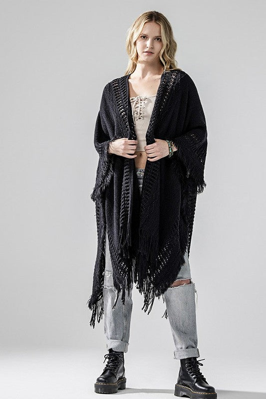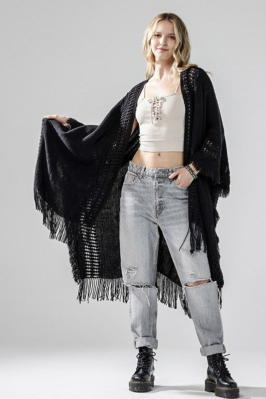 Boho Fringe Cardigan - Open-front style with fringe edges, perfect for layering over tops or dresses.
