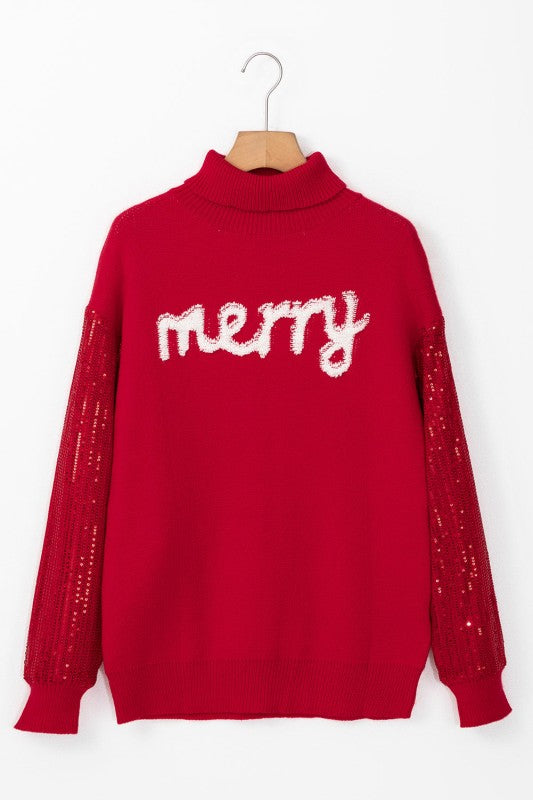 Embrace festive elegance with this sweater. Featuring a vibrant design, it perfectly captures holiday spirit. Sparkling sleeves add a refined, glamorous touch, while the cozy turtleneck ensures warmth and comfort throughout the season. Combining style and function, this sweater is an expert choice for holiday gatherings and seasonal celebrations.