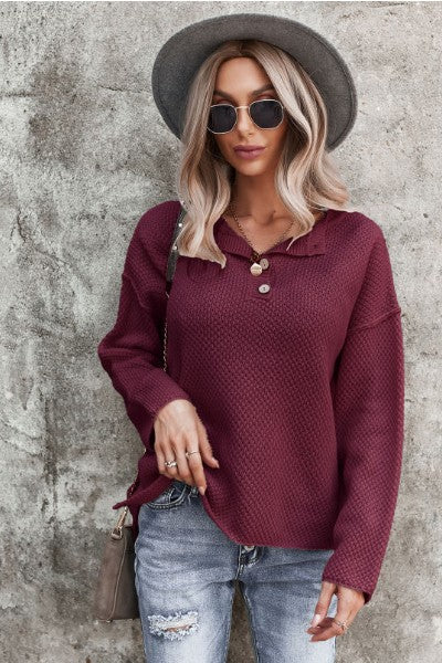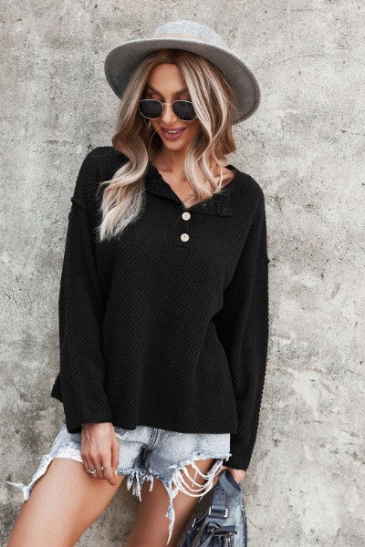 Half button front knit sweater