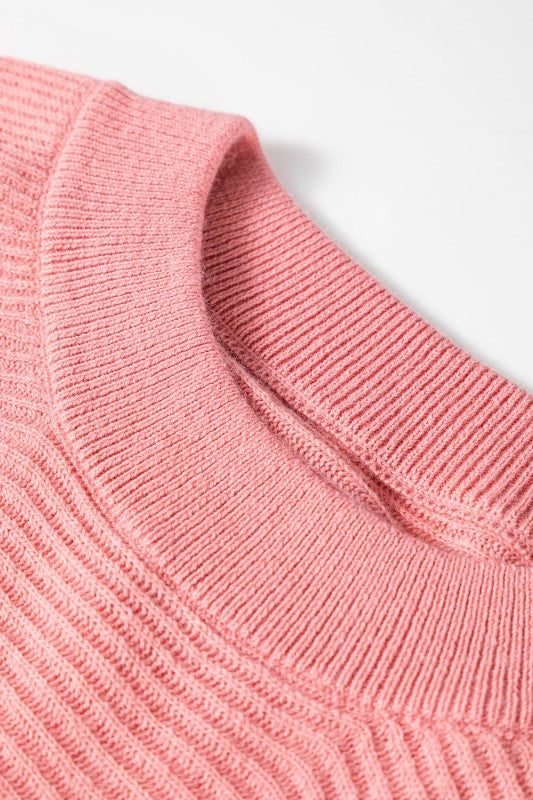Plus Size Ribbed Knit Crewneck Poncho Sweater