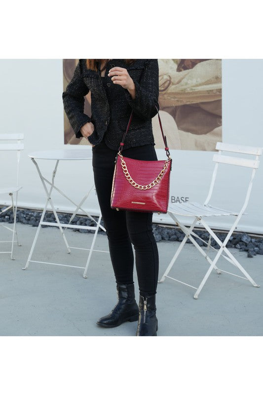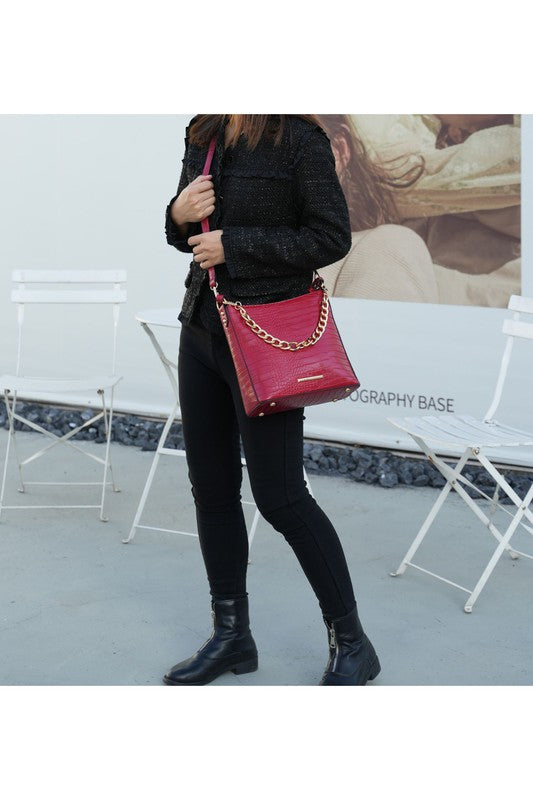 Faux crocodile-embossed
