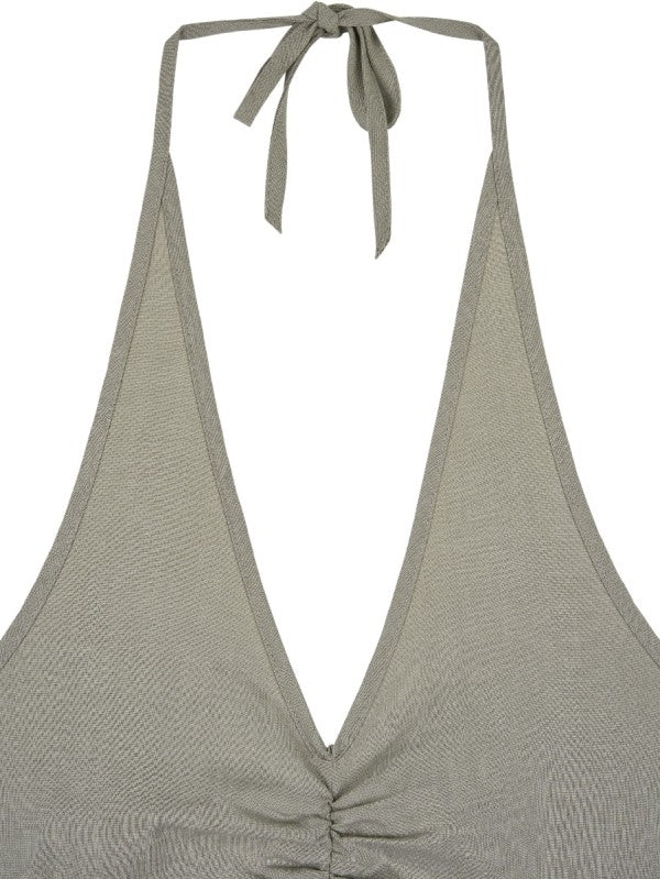 * Adjustable halter neck and striking open-back detail for a standout look.