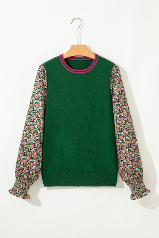 This sweater combines style and comfort with its unique design and soft knit fabric. The shirred cuffs enhance the sleeves, creating a refined yet playful silhouette that works effortlessly for both casual and dressier occasions. Designed to keep you cozy and warm, this sweater is a versatile addition to your seasonal wardrobe. Viscose/Polyester/Poly