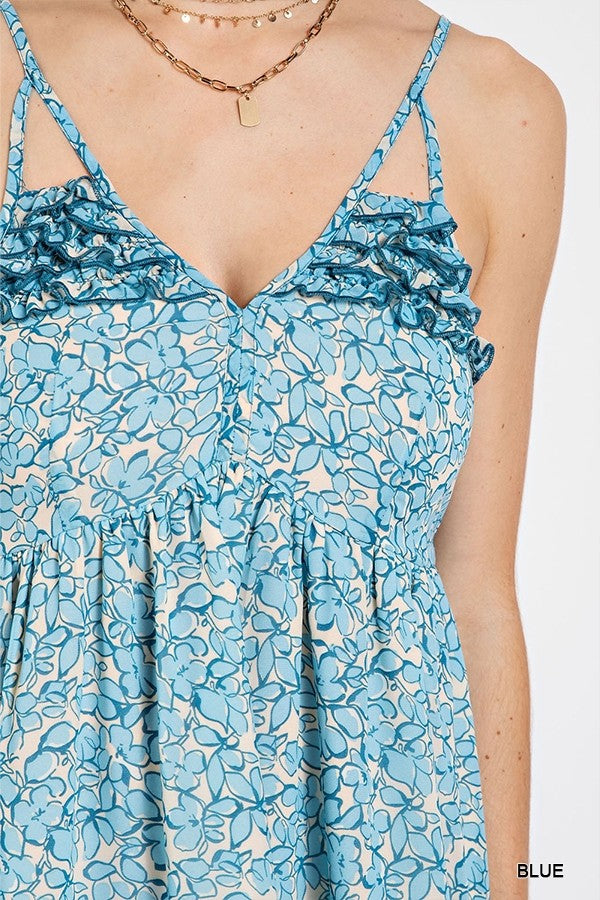 Floral Print V-Neck Dress with Skirt Lining