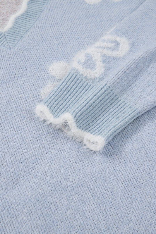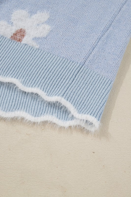 This sweater features a textured fuzzy pattern for a feminine appeal. Its neck design accentuates the collarbones, lending an elegant, refined silhouette. The sweater offers a flattering fit with drop shoulders and ribbed edges for added structure. Crafted to be soft and warm, it provides comfortable insulation during colder seasons while maintaining a stylish floral aesthetic. Polyester/Spandex