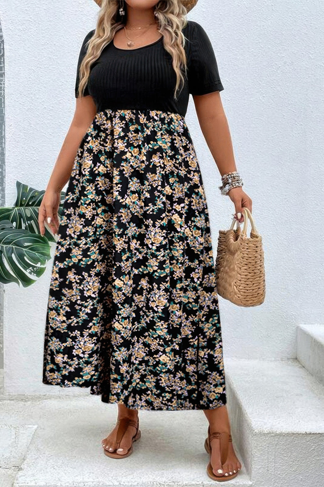 The Plus Floral Print Elastic Fit High Waist Dress is a flattering and comfortable choice for sunny days and casual gatherings. Made from 100% polyester, this dress features a vibrant floral print that brings a touch of romance and charm to your look. The elastic fit bodice offers a flexible, comfortable shape that moves with you, while the high waistline accentuates your curves for a beautiful, feminine silhouette. With its relaxed design and breezy style, this dress is perfect for vacation days, weekend outings, or laid-back gatherings.