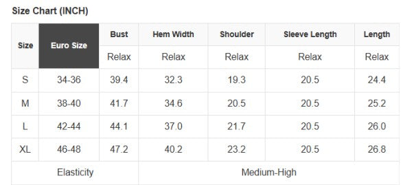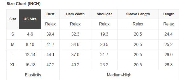 See size chart for approximate measurements.