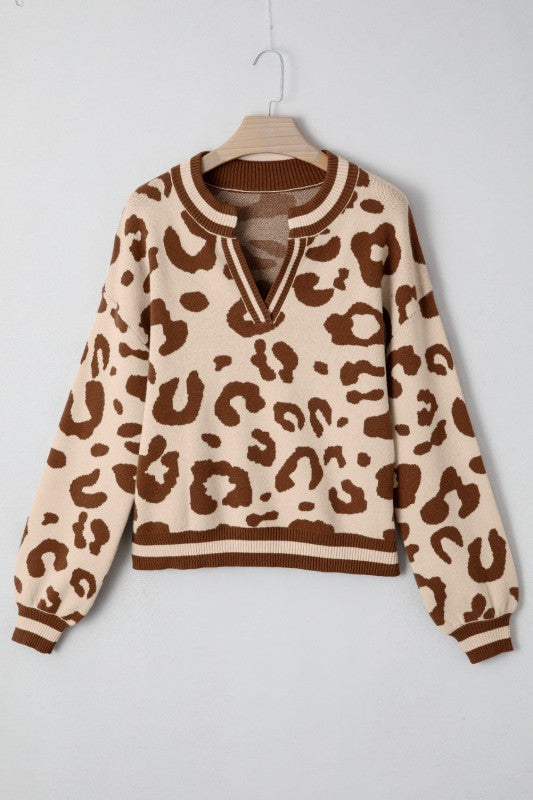 Unleash your inner wild child in this sweater that refuses to play it safe. Covered head-to-toe in bold spots, this knit delivers serious attitude with a refined notched neck design that keeps things sophisticated. The relaxed drop shoulder silhouette gives you that effortlessly cool vibe—perfect for anyone ready to make a statement without saying a word. Layer it, style it, own it. Viscose/Polyester/Poly