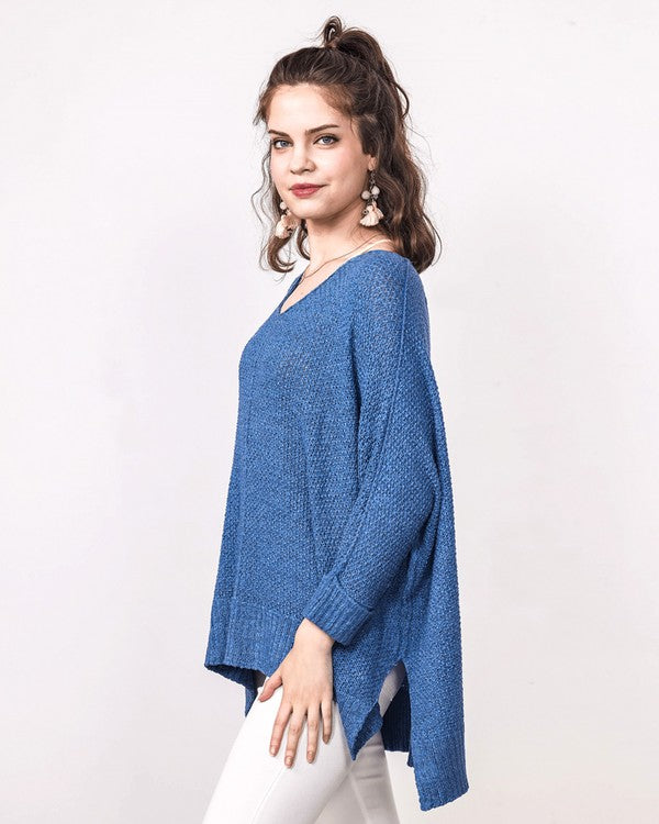 This top features a V neckline, batwing cuffed sleeves, and a high-low split hem, creating a stylish asymmetrical look. It presents a comfortable fit and a flattering silhouette, making it a must-have piece for your wardrobe.