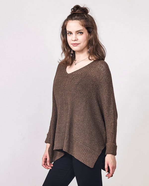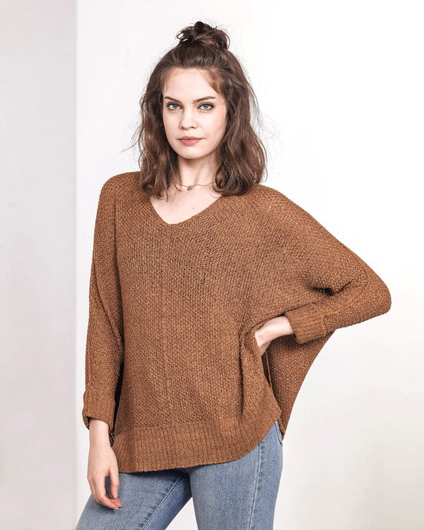 This top features a V neckline, batwing cuffed sleeves, and a high-low split hem, creating a stylish asymmetrical look. It presents a comfortable fit and a flattering silhouette, making it a must-have piece for your wardrobe.