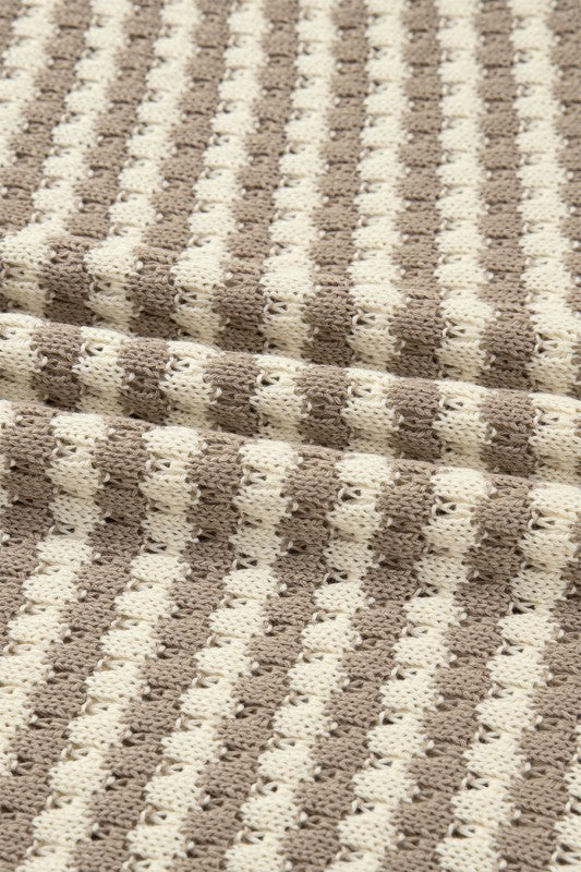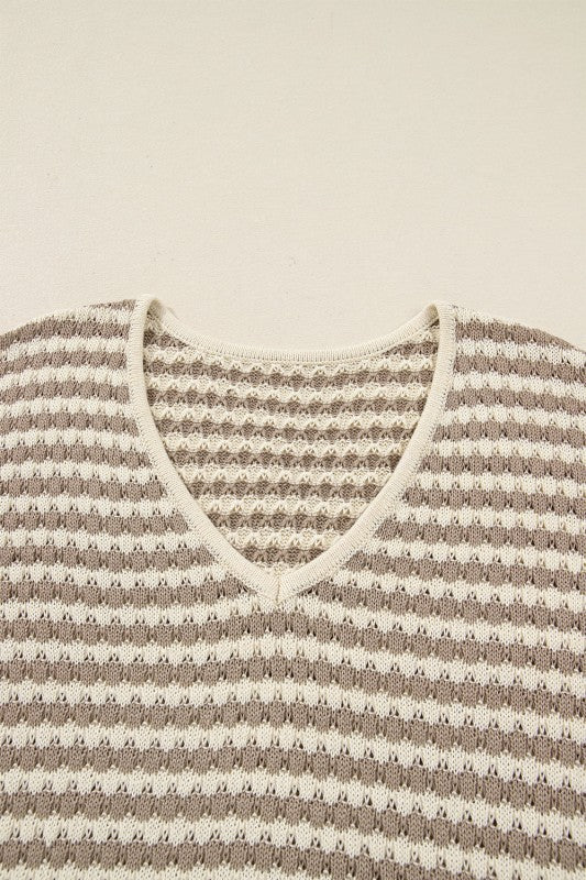 Plus Size Stripe V-Neck Drop Shoulder Sweater