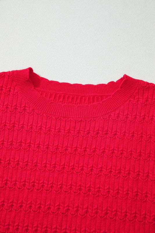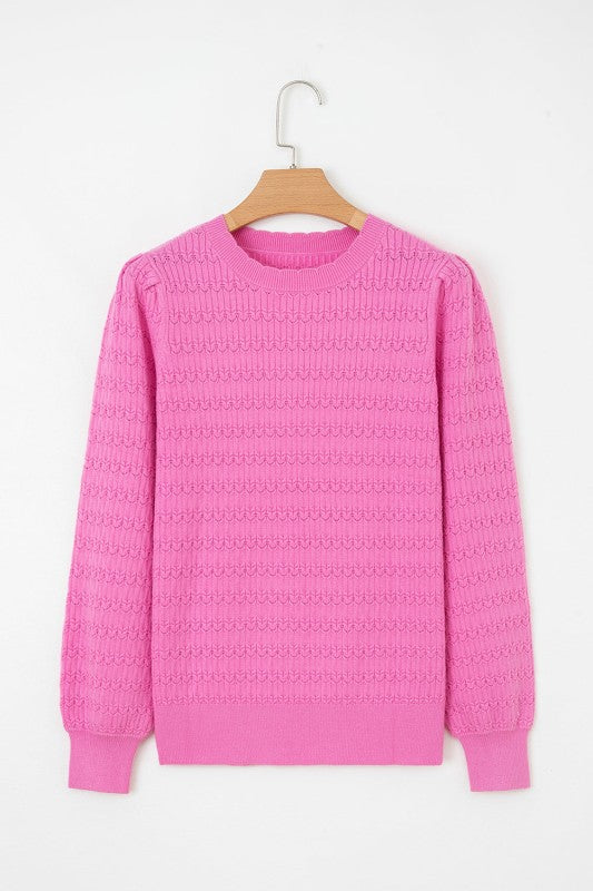 Solid Knit Ribbed Cuff Crewneck Sweater