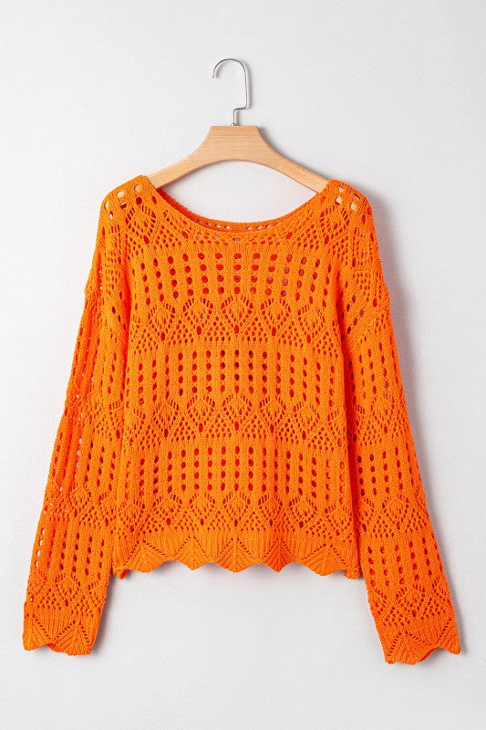 This sweater showcases a trendy pattern with delicate scallop edges, delivering a stylish yet breathable look. Made from a soft fabric blend, it provides comfortable warmth ideal for layering or standalone wear in cooler weather. Its versatile solid color design easily complements a variety of bottoms, making it a refined addition to any wardrobe.