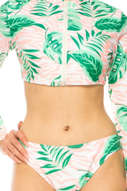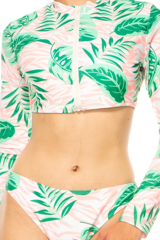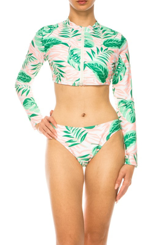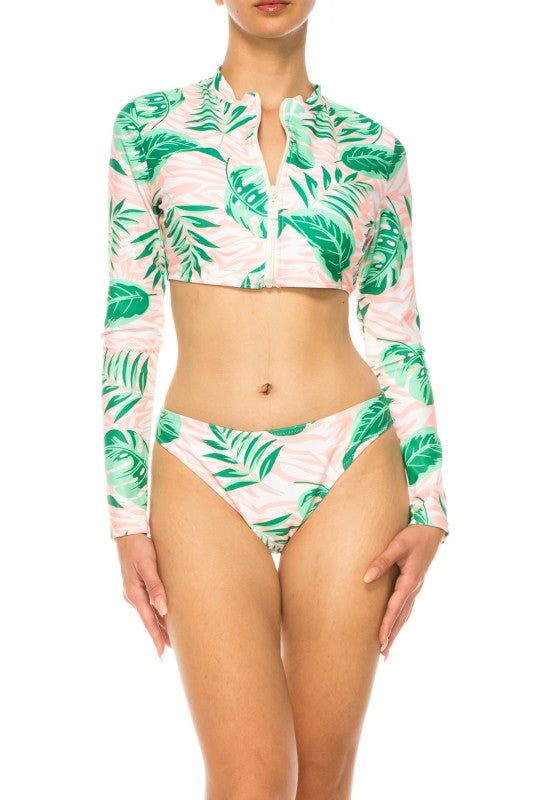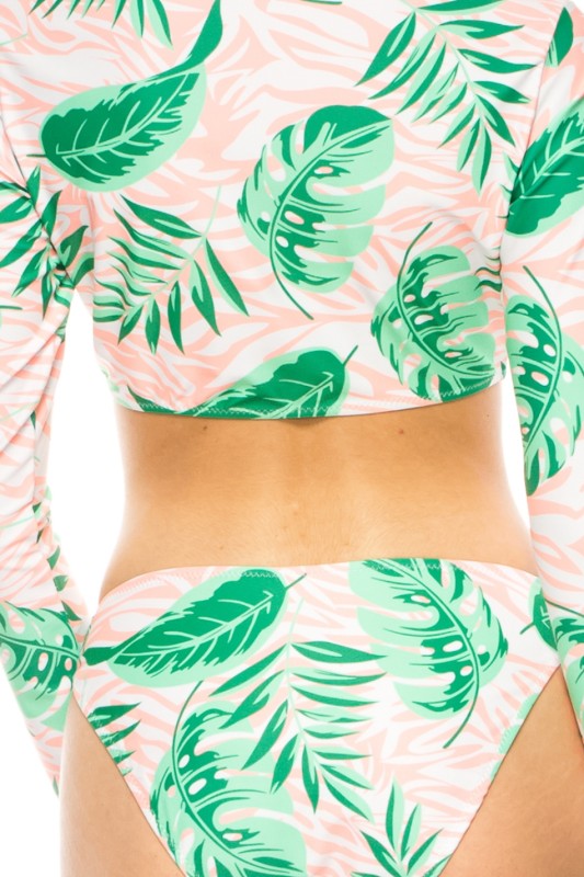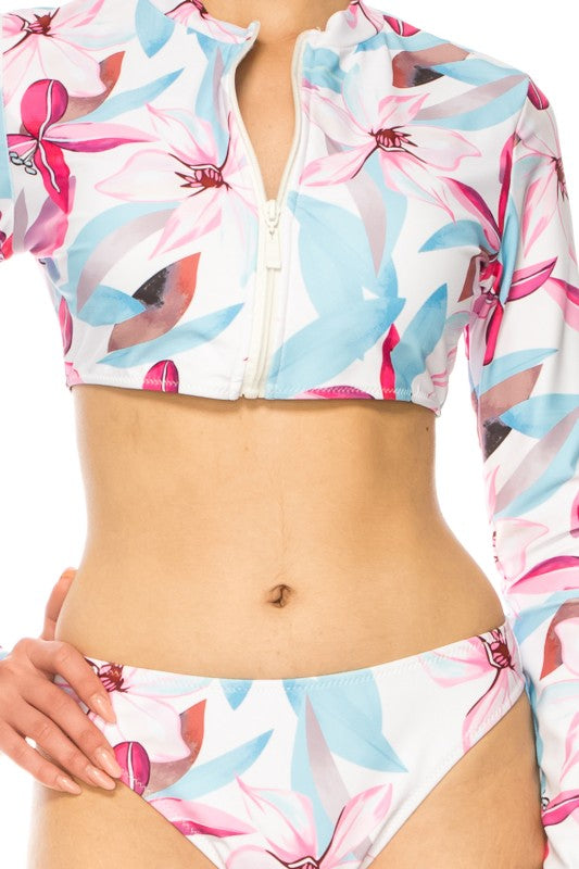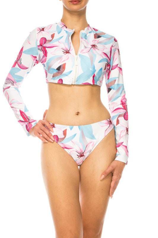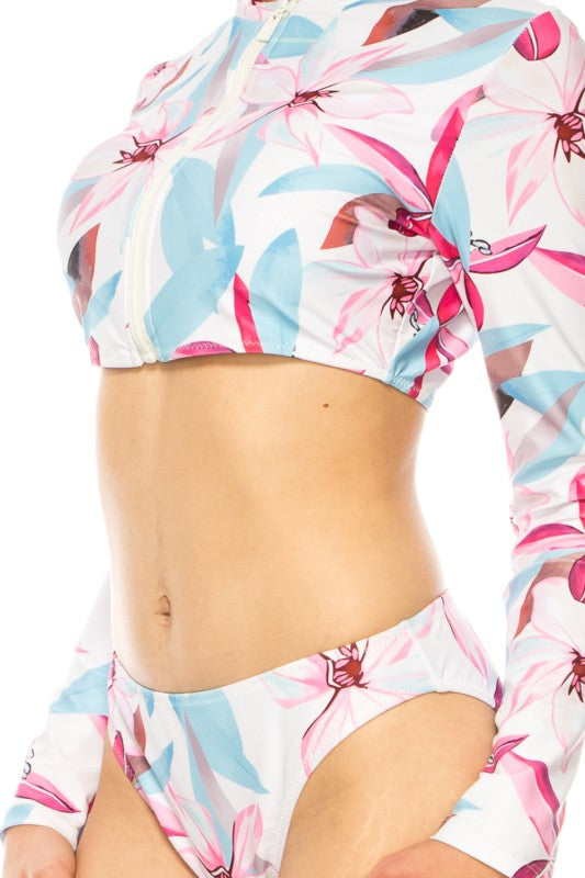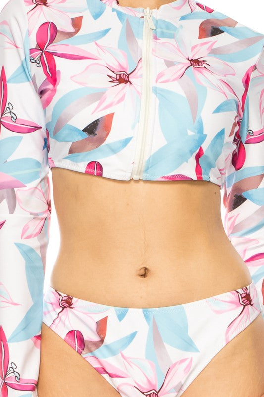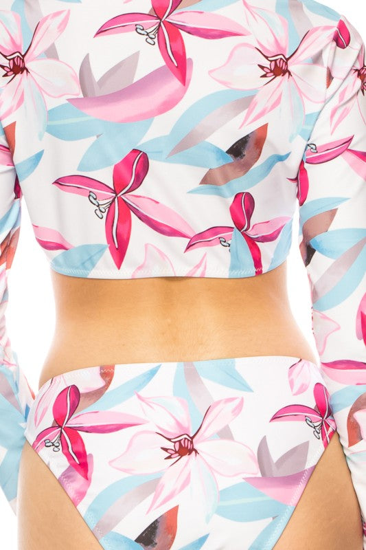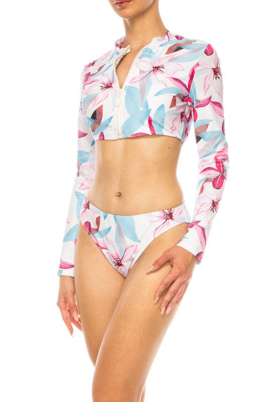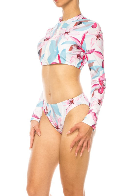 TWO PIECE FLORAL LONG SLEEVE SLEEK CUT OUT BIKINI