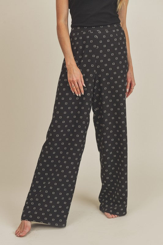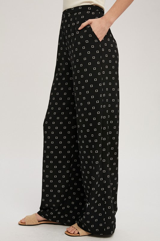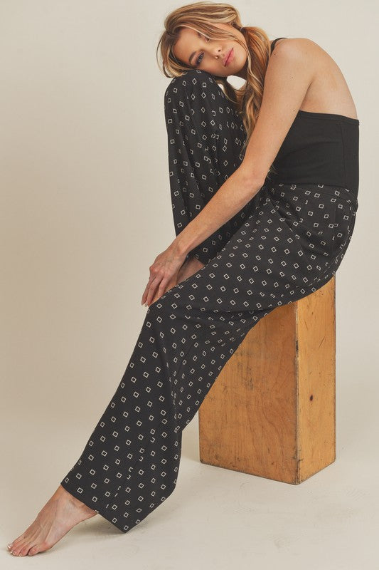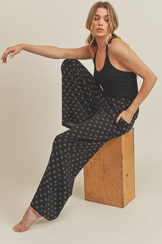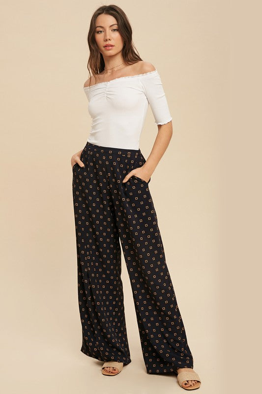 The Lucy Pant is a wide leg pants that has elastic in the back so she's easy to get in and out of.