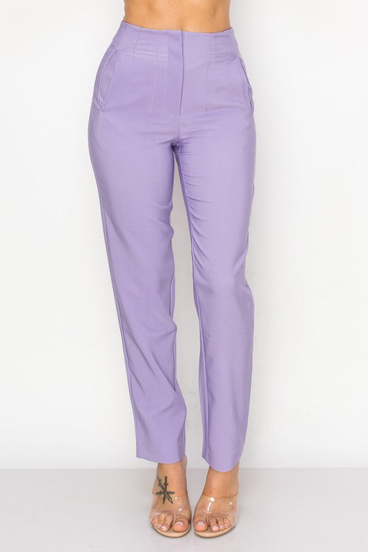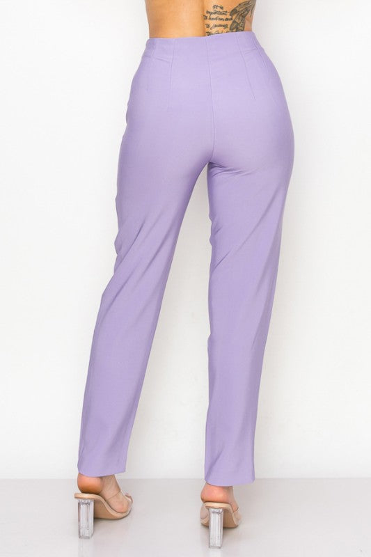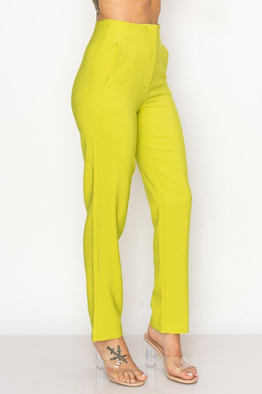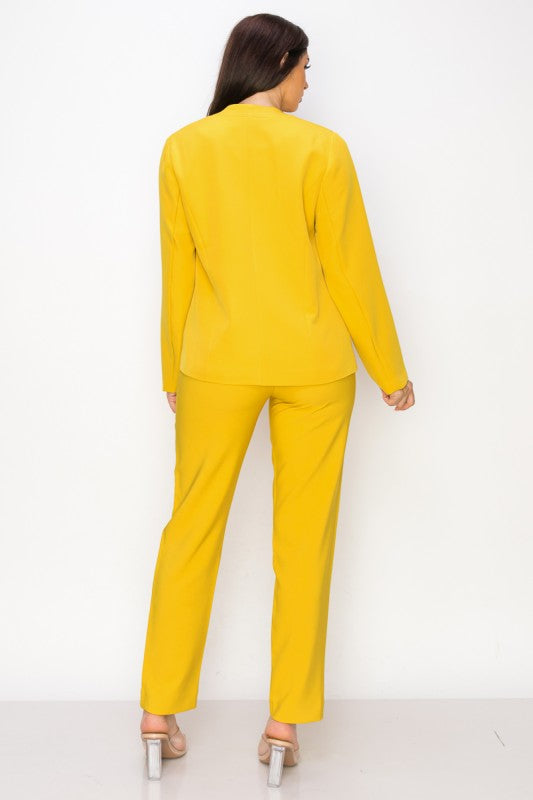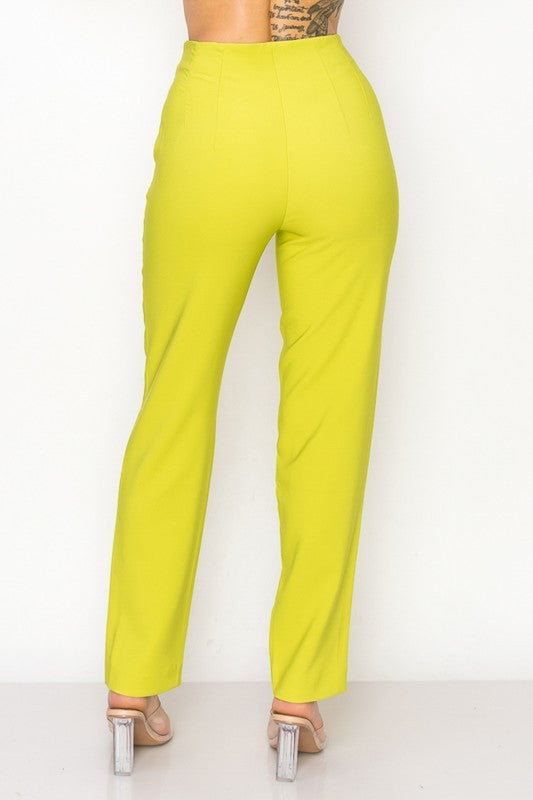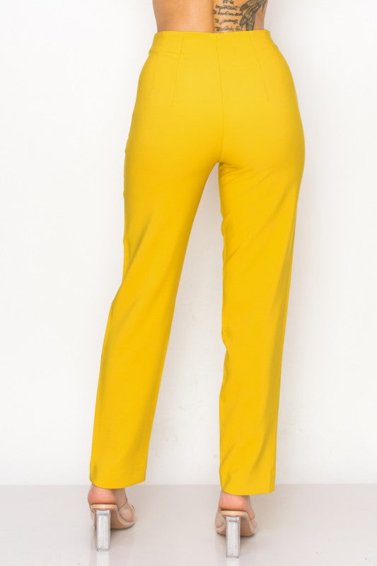 High Waisted Casual Pants & Dressy Vest Set with Buttons