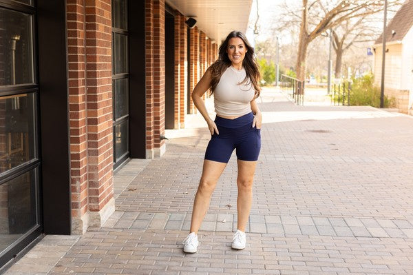 Get ready to feel comfortable and stylish in our Crossover Biker Shorts! The flattering crossover waistband and high-waisted design provide both comfort and a flattering fit.
